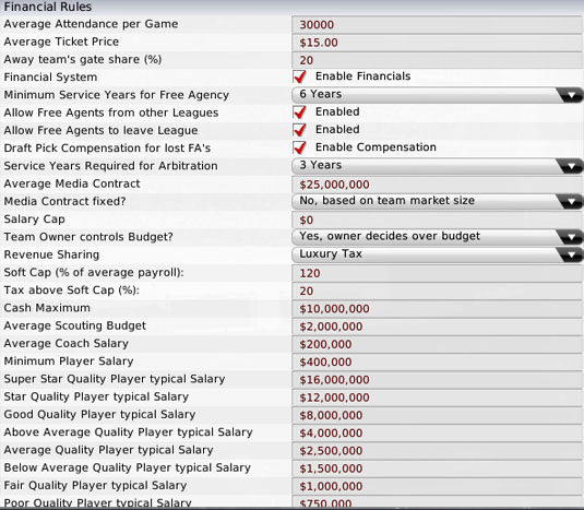 | Financial System | If this box is checked, the league has a financial system. If unchecked, the entire financial model will be disabled for this league. |